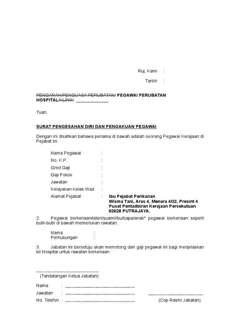 Tuan surat pengesahan diri dan pengakuan pegawai dengan ini disahkan bahawa penama di. Surat izin yang ditandatngani pesakit ataupun waris salinan kad rawatan pesakit. Untuk pegetahuan tuan saya mengalami demam pada malam sebelumnya 15 julai 2018 dan telah berjumpa doktor di hospital likas kota kinabalu.