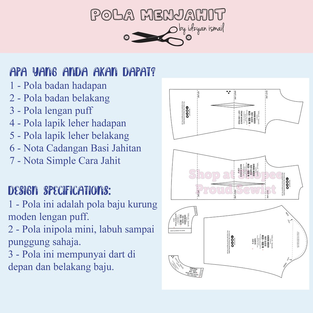 Pola Kurung Moden Lengan Puff Pola Baju Kurung Moden Puff Pola Baju Sahaja Sewing Pattern Pola Lengan Puff Shopee Malaysia